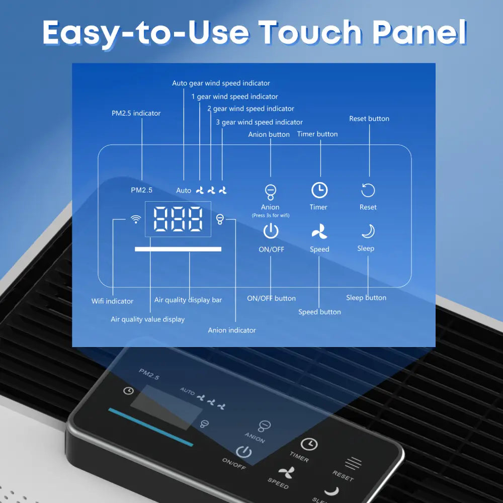 - Smart PM2.5 Sensor + Air Quality Indicator: Real-time air monitoring with LED display and Auto Mode adjustment for optimal air quality.