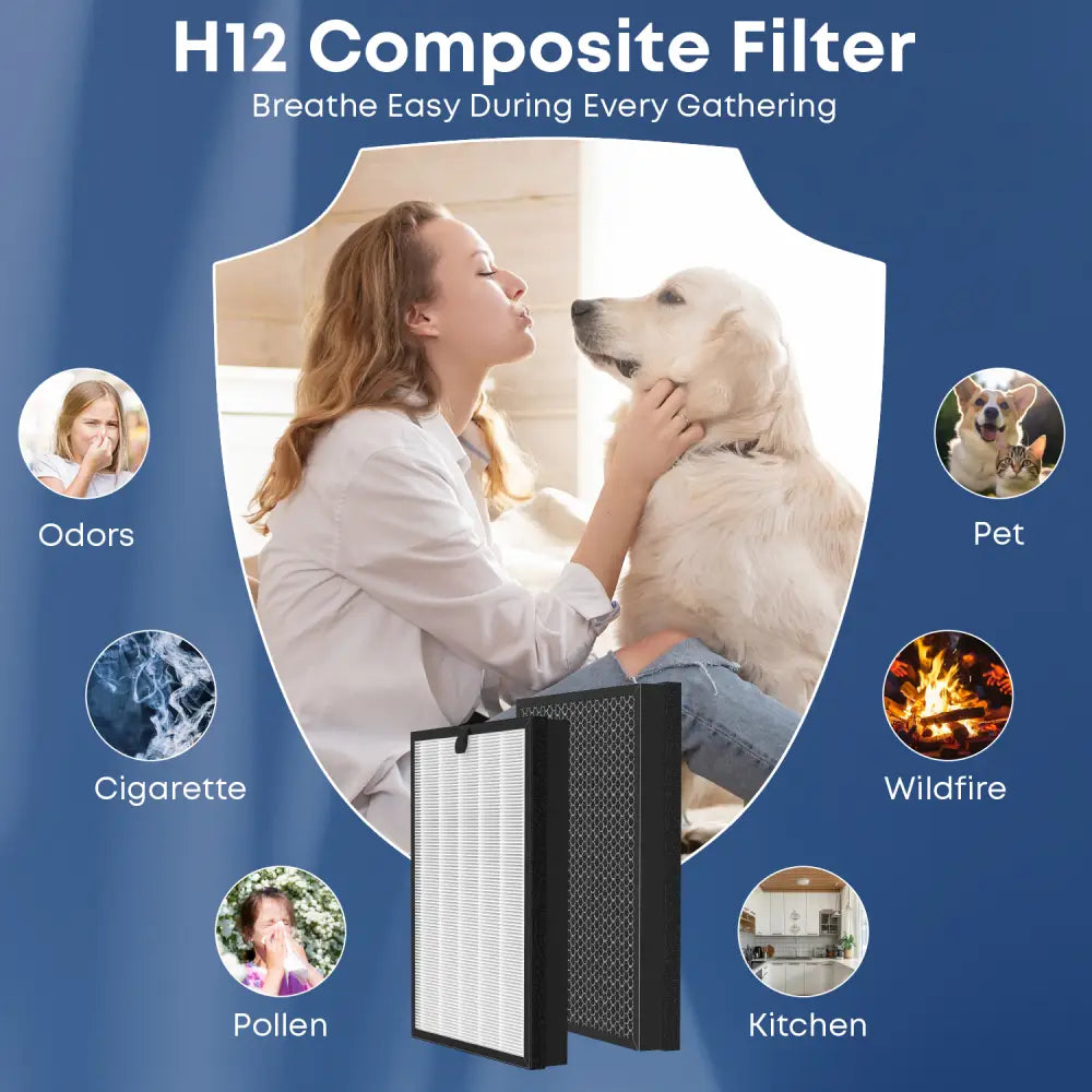 - H12 HEPA Filtration with Anion Purification: Captures 99.97% of PM2.5, dust, smoke, and allergens with H12 HEPA and ioniser technology.